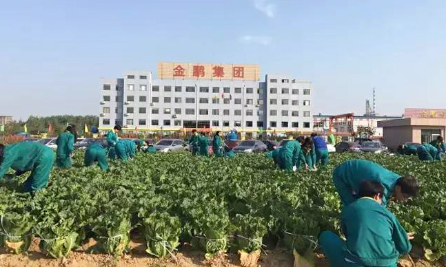 金鵬礦機(jī)11月18日清晨,金鵬集團(tuán)利用早會時間組織全員一起把公司豐收的有機(jī)無公害大白菜進(jìn)行窖藏,每個人臉上都洋溢著快樂自豪的喜悅,我參與,我收獲,我快樂!